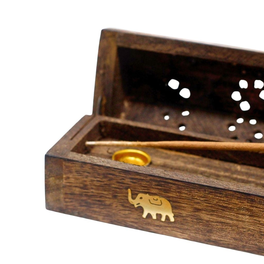 La sua forma a scatola è studiata per bruciare l’incenso in modo ordinato e sicuro, raccogliendo le ceneri all’interno e mantenendo pulita la superficie.
