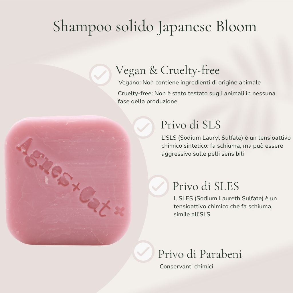 - 1 shampoo solido da 70 g con fragranza Japanese Bloom (rosa e loto)